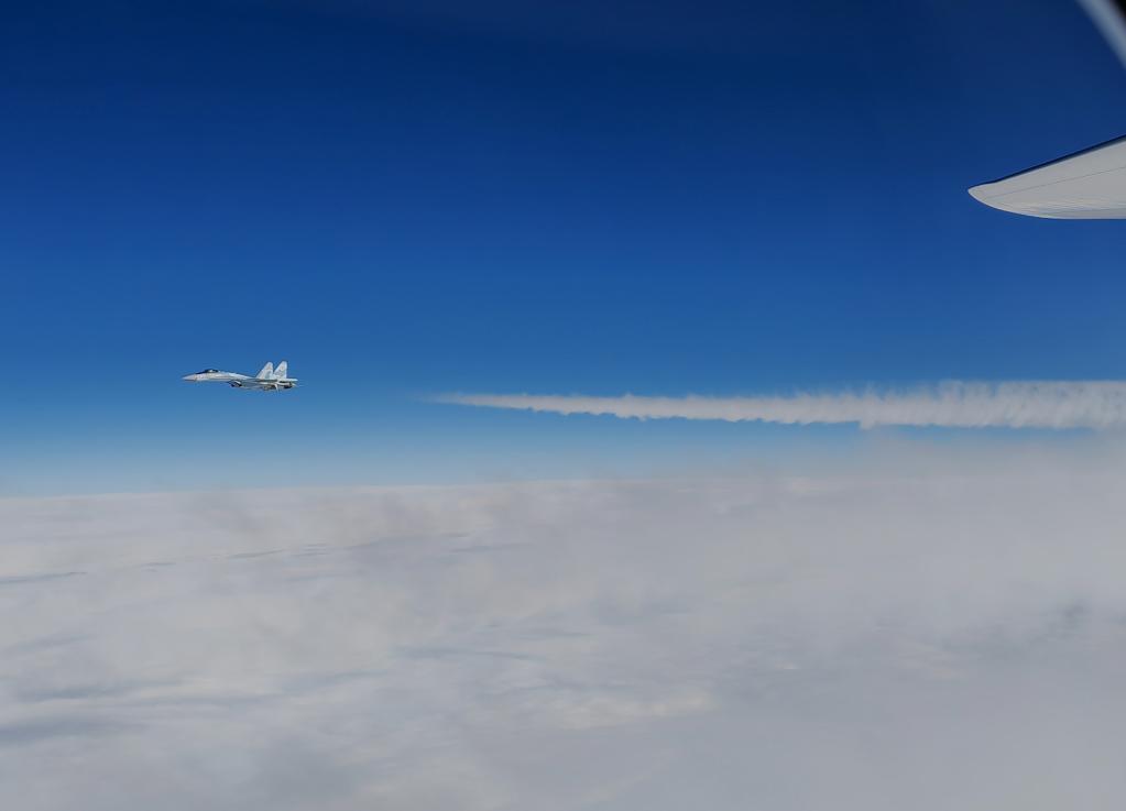專機抵達喀山國際機場前,俄戰機升空護航。