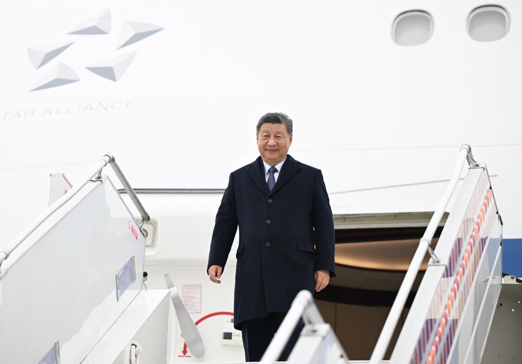 當地時間10月22日中午,國家主席習近平乘專機抵達喀山,應俄羅斯聯邦總統普京邀請,出席金磚國家領導人第十六次會晤。