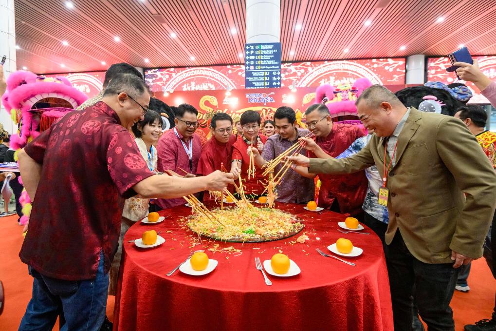 1月29日,馬來西亞吉隆坡國際機場舉辦春節期間傳統習俗活動——“撈魚生”儀式。新華社發 (張紋綜攝)