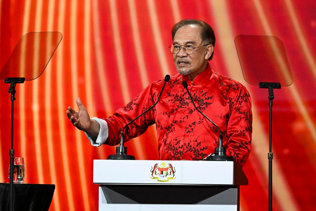 1月25日,在馬來西亞吉隆坡,馬來西亞總理安瓦爾出席活動並致辭。2025年“歡樂春節”全球啟動儀式暨“歡樂春節 五洲同歡”演出25日晚在馬來西亞吉隆坡舉行。新華社記者程一恒攝