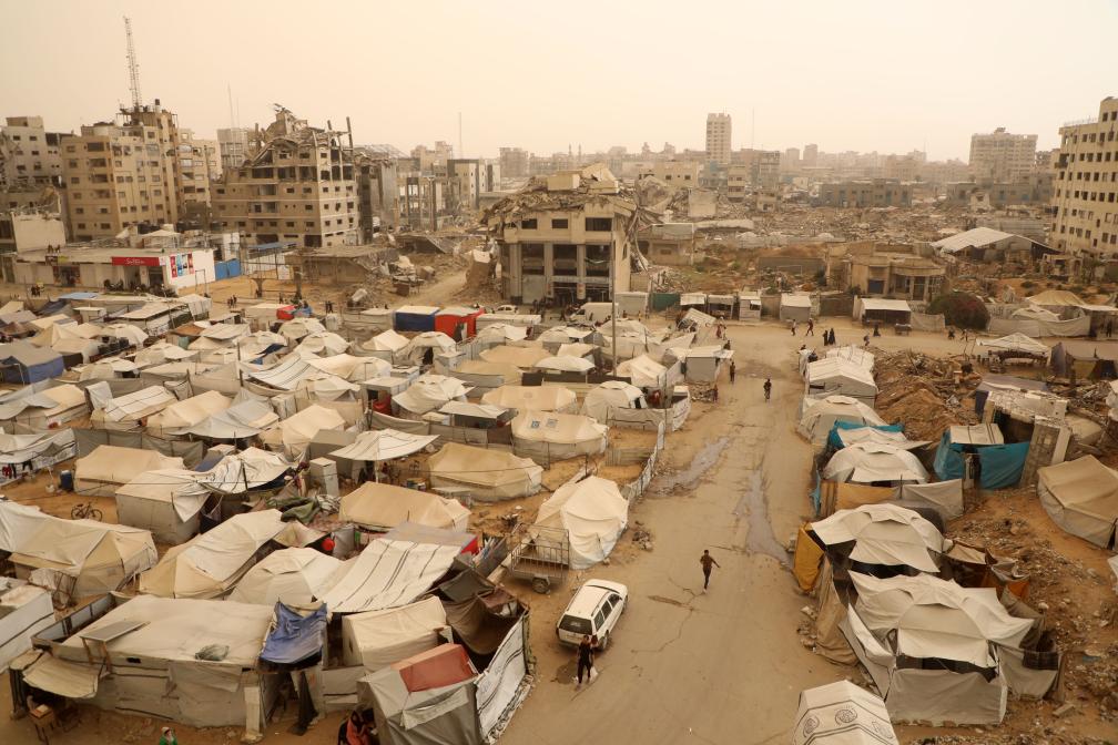 這是4月30日在加沙城拍攝的沙塵天氣下的流離失所者聚集區。新華社發(裏澤克·阿卜杜勒賈瓦德攝)