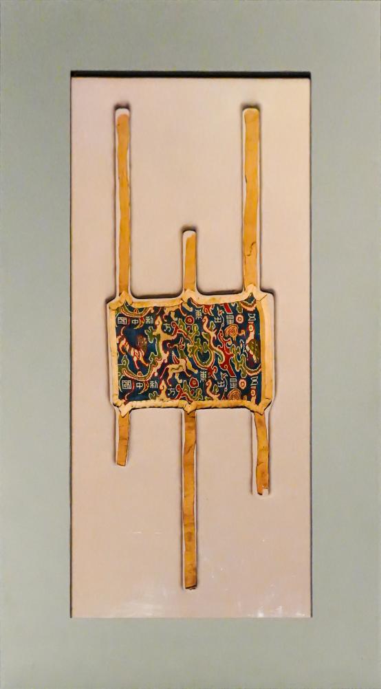 這是2025年5月9日在新疆維吾爾自治區博物館拍攝的漢代“五星出東方利中國”錦護臂。新華社記者 徐宏岩 攝