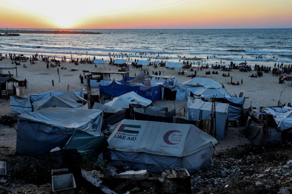 這是8月18日在加沙城拍攝的流離失所的巴勒斯坦人居住的帳篷。新華社發(裏澤克·阿卜杜勒賈瓦德攝)