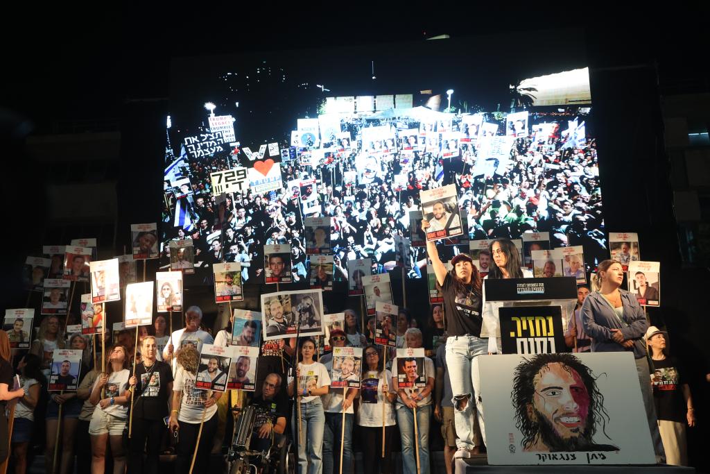 10月4日,被扣押人員家屬和支持停戰的人們在以色列特拉維夫舉行游行集會,要求政府迅速在加沙地帶實現停火,讓被扣押人員回家。新華社發(吉爾·科恩·馬根攝)