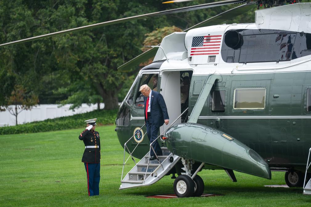 9月30日,在美國首都華盛頓,美國總統特朗普乘直升機返抵白宮。新華社記者胡友松攝