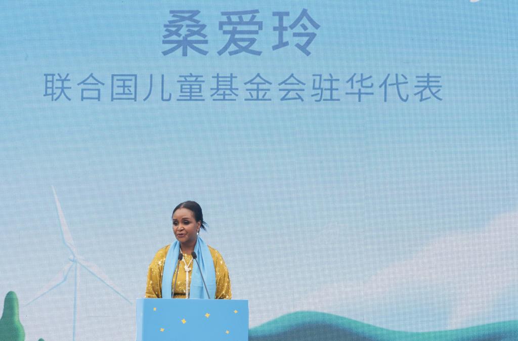 圖為2025年5月30日,聯合國兒童基金會駐華代表桑愛玲在北京啟動的“敢作氣候擔當”青少年應對氣候變化倡導活動上致辭。新華社記者 張玉薇 攝