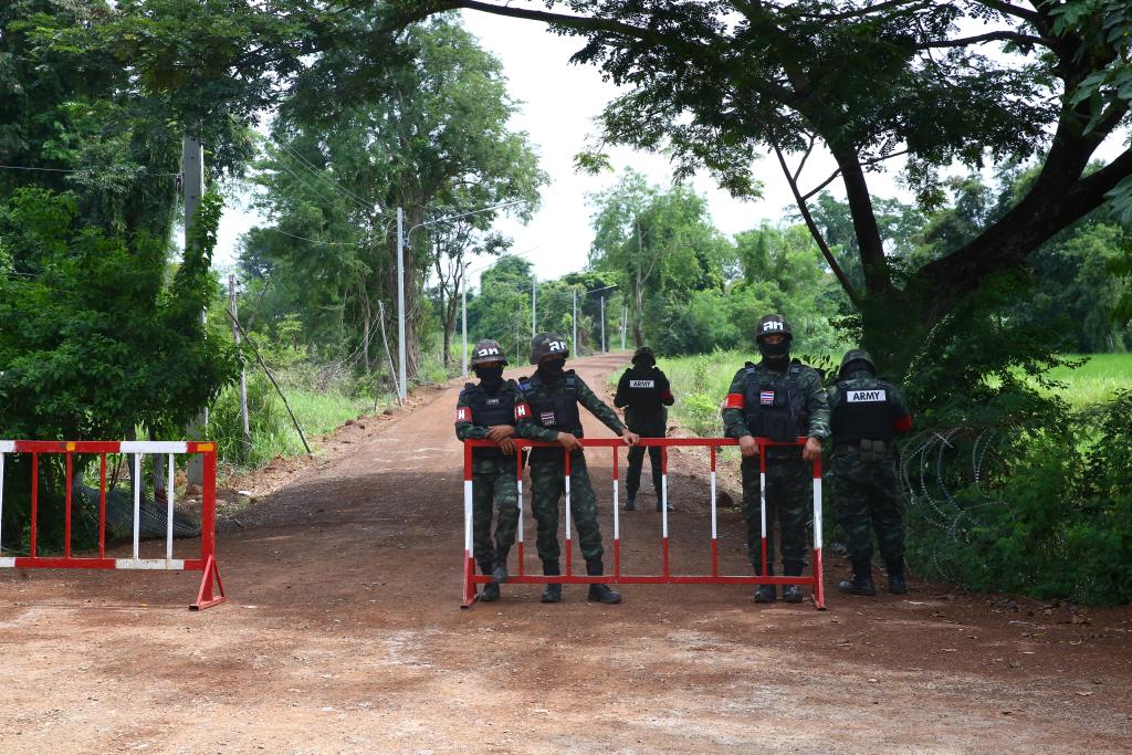 10月9日,士兵在泰國沙繳府緊鄰泰柬邊境的班農禪村警戒。新華社記者孫瑋彤攝