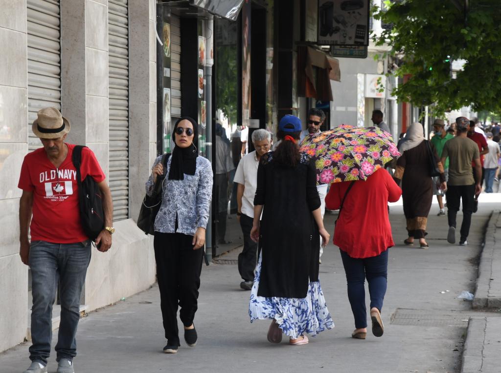 2022年6月27日,行人走在突尼斯首都突尼斯市中心的街道上。新華社發(阿代爾攝)