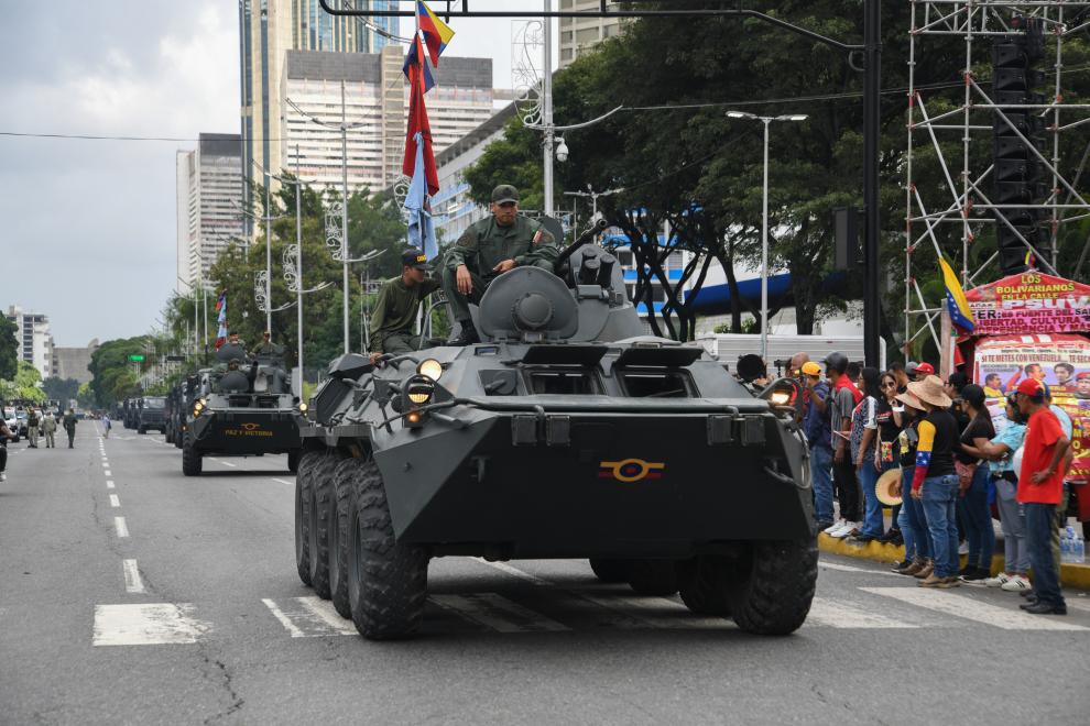 9月23日,在委內瑞拉首都加拉加斯,參加游行的裝甲車輛列隊行進。當天,加拉加斯舉行大規模游行,呼籲保衛委內瑞拉主權與和平,反對美國在加勒比海域的軍事威脅。新華社發(馬科斯·薩爾加多攝)