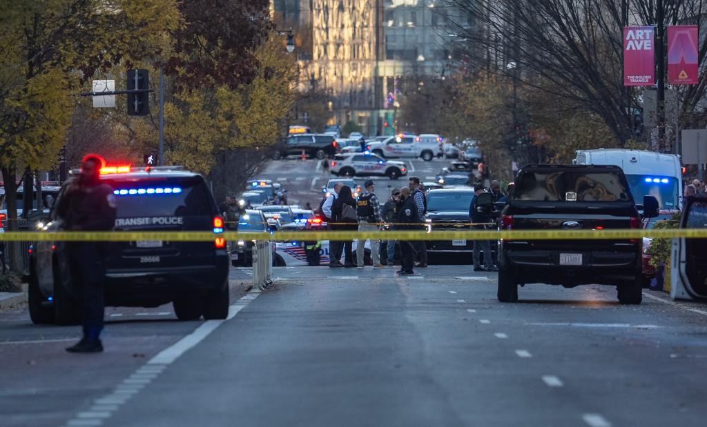 11月26日,在美國首都華盛頓,警方封鎖案發現場附近街道。新華社記者胡友松攝