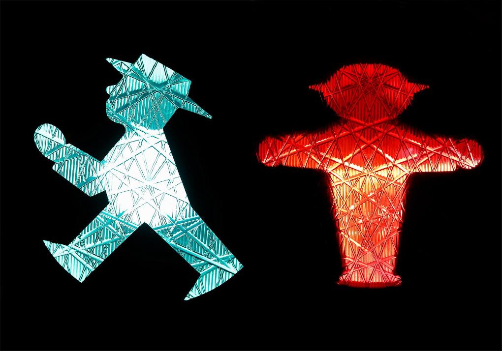 這是2020年11月12日在德國首都柏林拍攝的“紅綠燈小人”圖案的拼版照片。新華社記者單宇琦攝