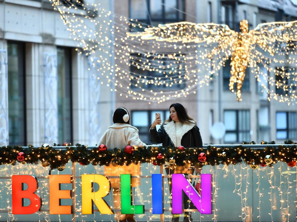 2023年12月21日,人們在德國柏林一家購物中心拍照留念。新華社記者任鵬飛攝