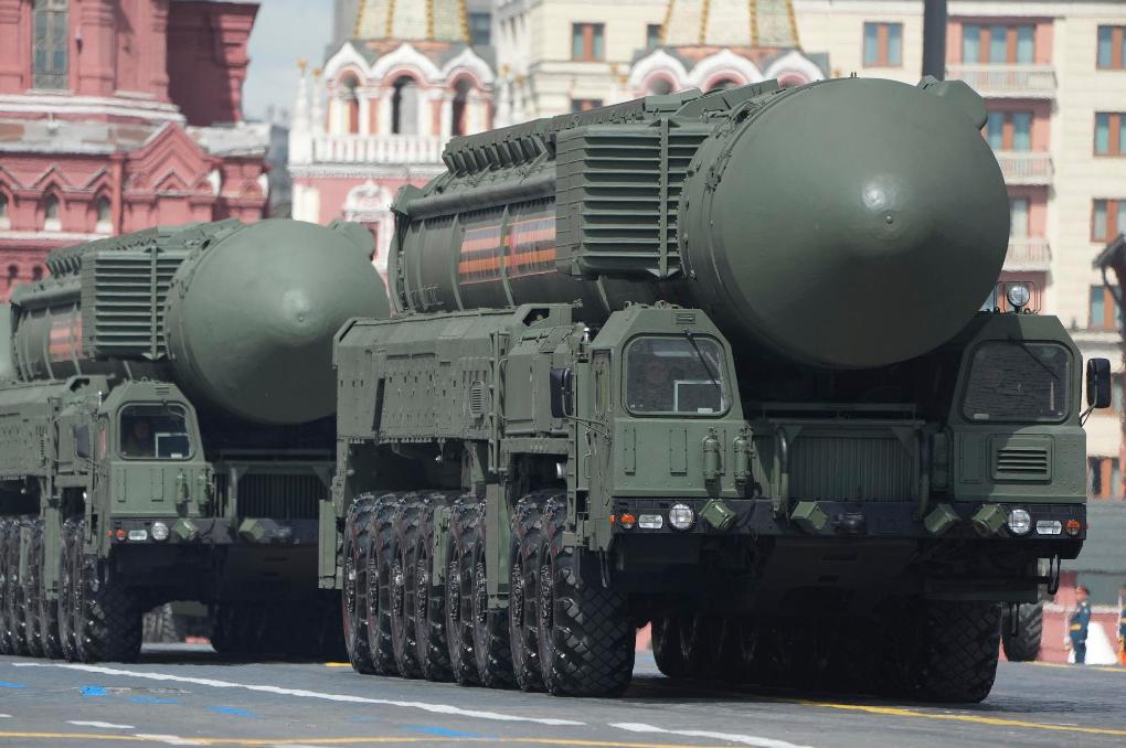 這是5月9日在俄羅斯首都莫斯科舉行的紀念蘇聯偉大衛國戰爭勝利80周年閱兵式上拍攝的洲際彈道導彈。新華社記者賴向東攝