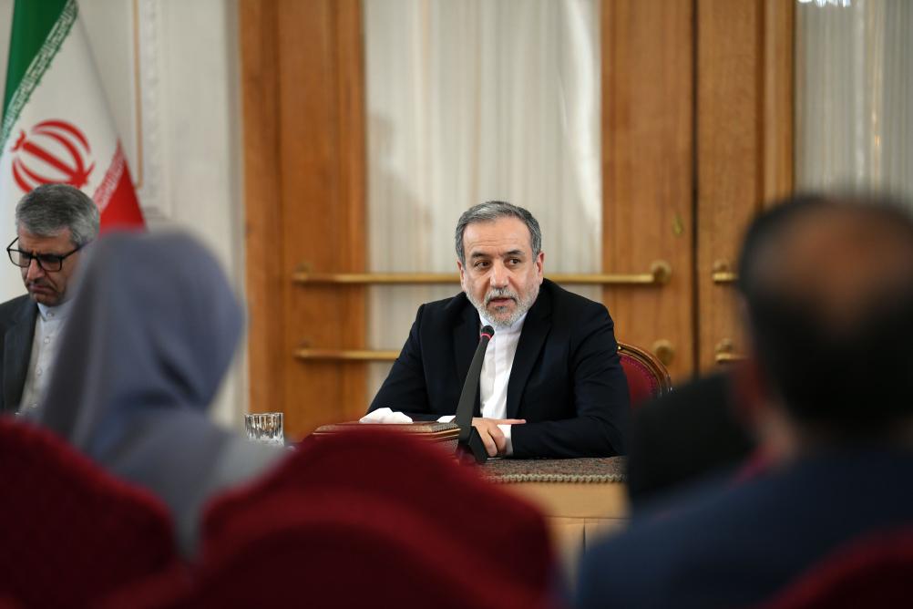 10月5日,在伊朗首都德黑蘭,伊朗外交部長阿拉格齊出席記者會。新華社記者沙達提 攝