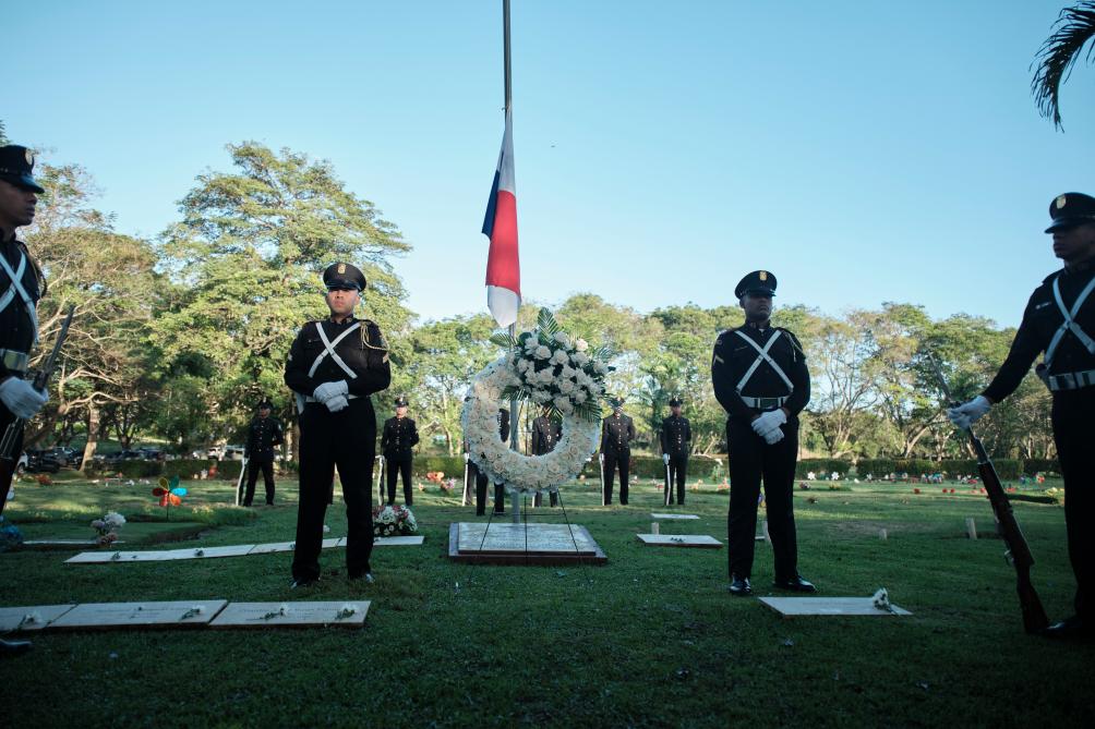 這是2025年12月20日在位於巴拿馬首都巴拿馬城的“和平花園”公墓拍攝的悼念美軍入侵遇難者的“全國哀悼日”活動現場。新華社記者許咏政攝