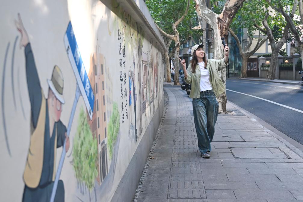 2025年9月22日,來自法國的樂蓋曦在上海市南昌路拍攝Vlog視頻。