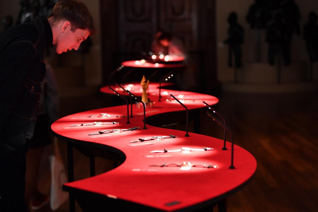 2025年11月13日,在瑞士日內瓦,一名男子參觀日內瓦高級鐘錶大賞展覽。新華社記者連漪攝