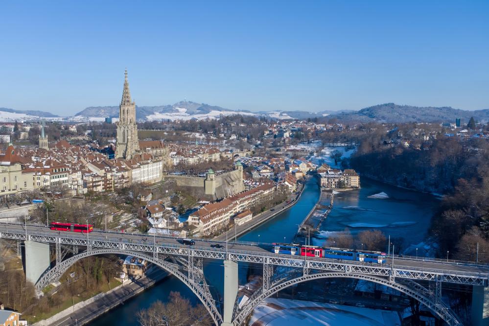 這是2024年1月20日在瑞士伯爾尼拍攝的城市風光(無人機照片)。新華社記者孟鼎博攝