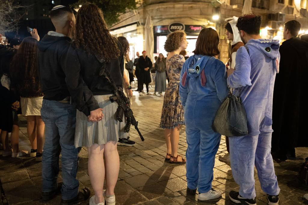 2025年3月13日,在耶路撒冷街頭,一名女子攜槍出行。