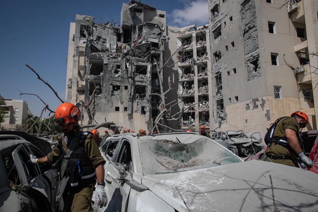 2025年6月24日,應急和救援人員在以色列南部貝爾謝巴的導彈襲擊現場開展工作。