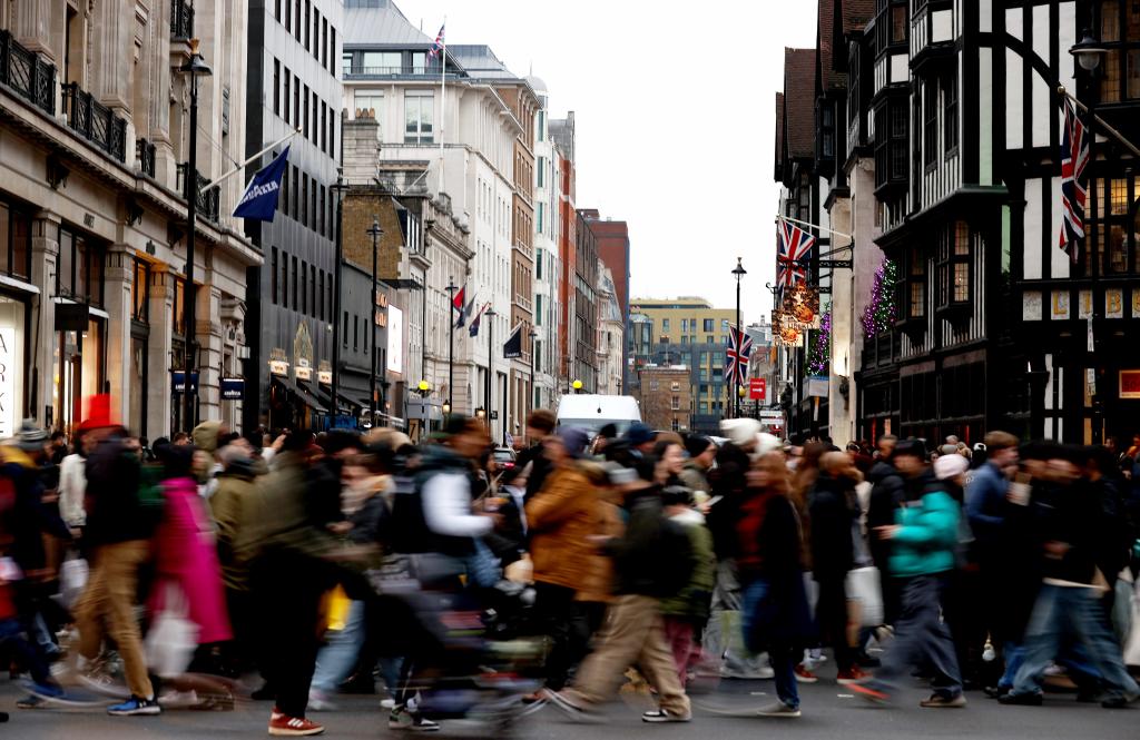 2024年12月26日,人們在英國倫敦攝政街購物。新華社記者李穎攝