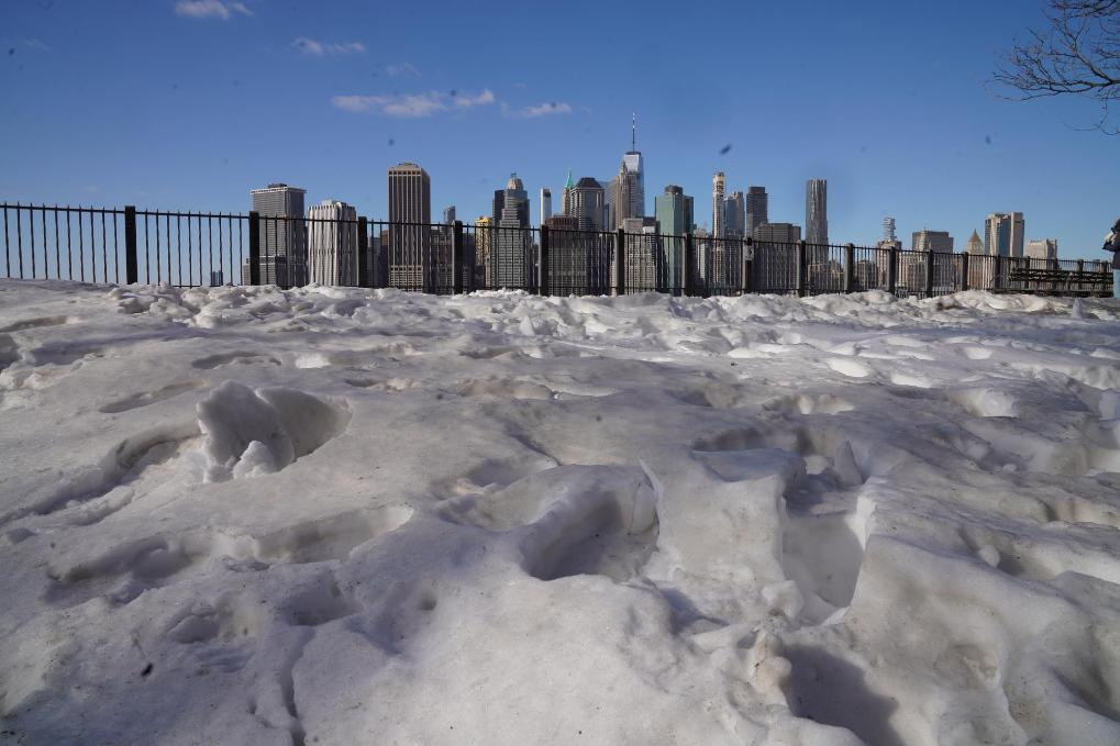 這是1月31日在美國紐約拍攝的積雪。新華社記者張鳳國攝