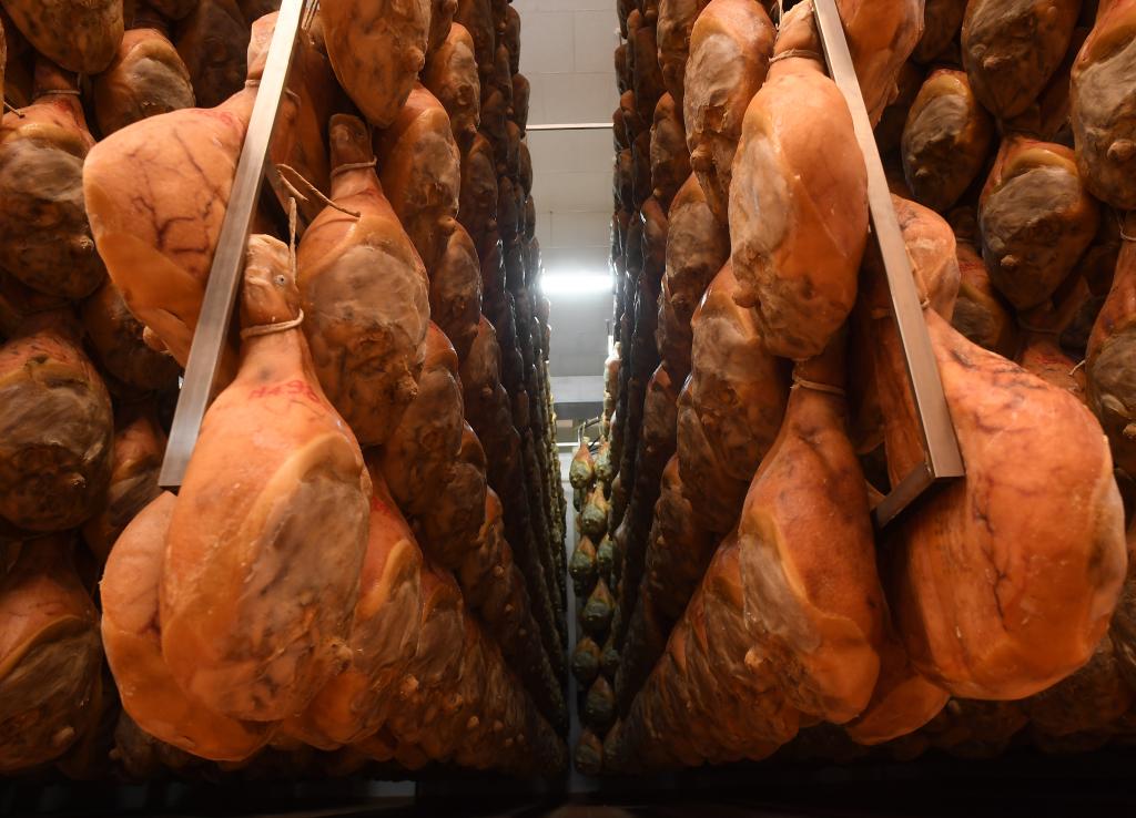 這是2021年4月13日在意大利帕爾瑪一家公司工廠拍攝的製作中的帕爾瑪火腿。新華社發(阿爾貝托·林格利亞攝)