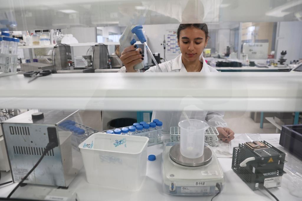 2025年10月31日,在意大利薩龍諾,生物科技企業薩科集團(Sacco System)的工作人員在實驗室工作。新華社記者李京攝