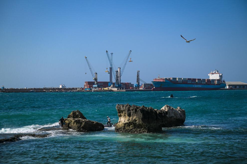 1月11日,在索馬裏首都摩加迪沙,貨船停靠在摩加迪沙港。新華社記者楊光攝