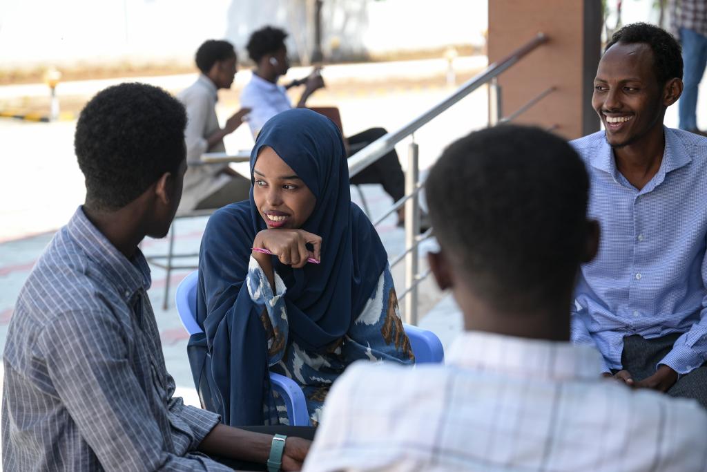 1月11日,在索馬裏首都摩加迪沙的索馬裏國立大學,學生們在校園裏交談。新華社記者楊光攝