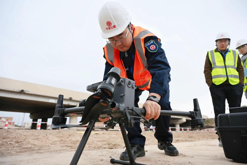 賽場之上,傳統技藝與智能技術交相輝映。挖掘機操作區裏,選手們操控機械臂上演“精準繡花”,挖鬥將籃球從地上輕輕攬起,在數米高空平穩轉運後穩穩投入籃筐;在路面病害修補競賽區,各參賽小隊攜新型材料與設備快速響應,從病害診斷到瀝青攤鋪一氣呵成,爭取在最短時間內修補路面;無人機巡檢賽區尤為引人注目,參賽隊伍操控設備完成橋梁結構掃描後,即時生成巡檢報告,“大家既能切磋智能裝備使用技巧,又能交流實際場景應對經驗,比單純培訓收穫更大。” 參賽選手申琨&&。