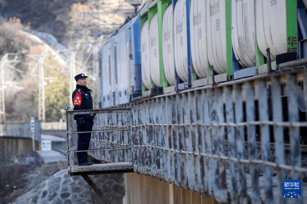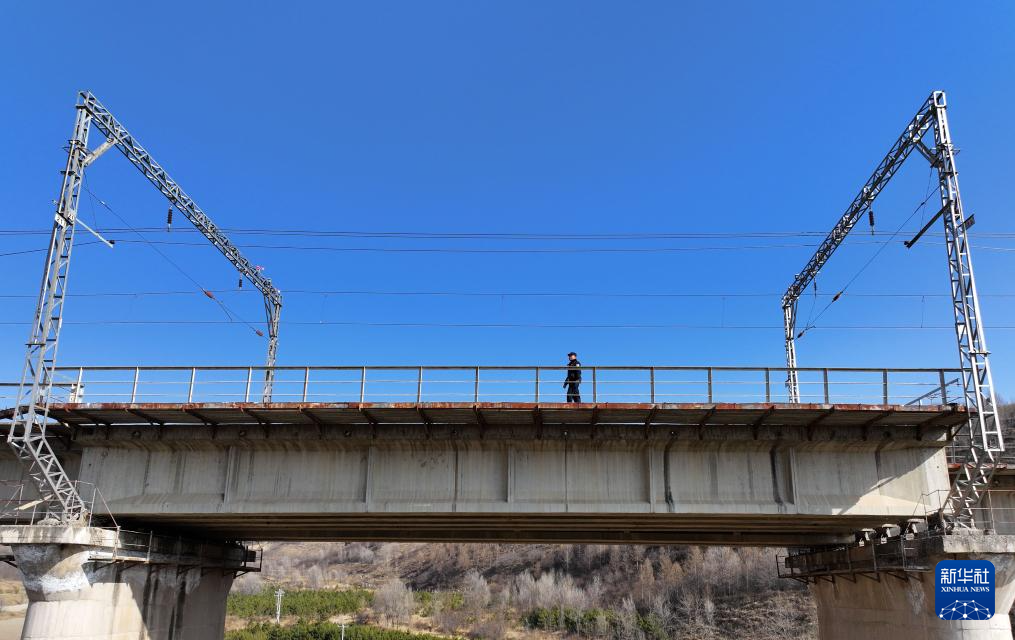 1月21日,馬永東在轄區巡線時,目送列車經過鐵路橋。
