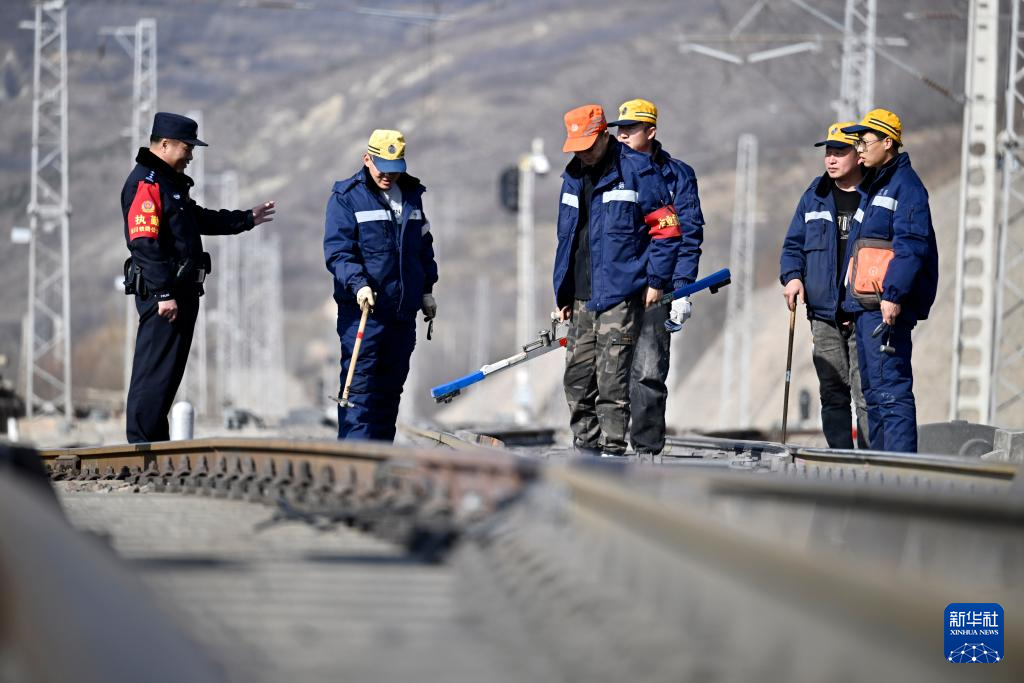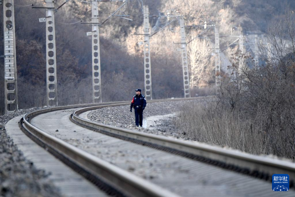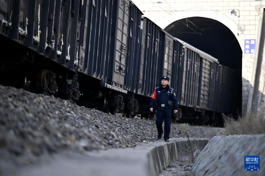 馬永東是銀川鐵路公安處固原站派出所六盤山警務區的一名民警。他所負責的36公里鐵路線位於六盤山腹地,山大溝深、地形複雜,包含33座高架鐵路橋和17個隧道。春運期間,馬永東每天都要冒着零下十幾攝氏度的嚴寒步行十幾公里,對鐵路沿線重點設施進行巡檢,走訪沿線百姓,保障線路安全。面對冬日孤寂蕭瑟的六盤山,已經連續32年堅守在春運崗位上的馬永東説:“已經習慣了線路上的工作,不覺得寂寞,想著能保障春運線的安全,能為旅客出一份力,值得!”新華社記者 王鵬 攝