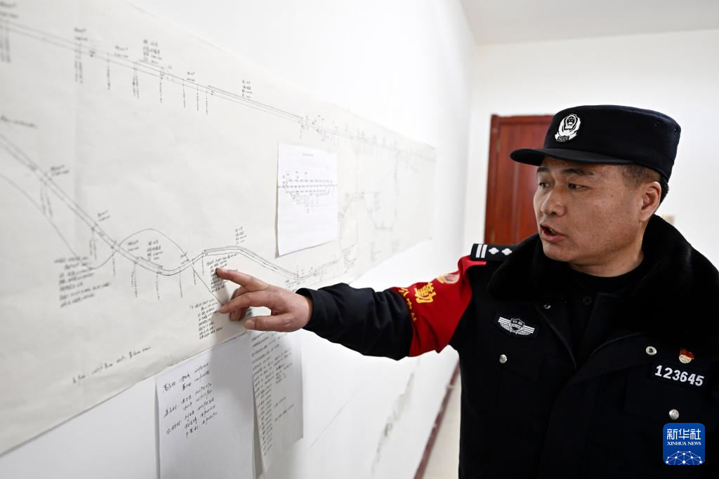 1月21日,馬永東在六盤山警務區介紹自己手繪的轄區線路警情圖。