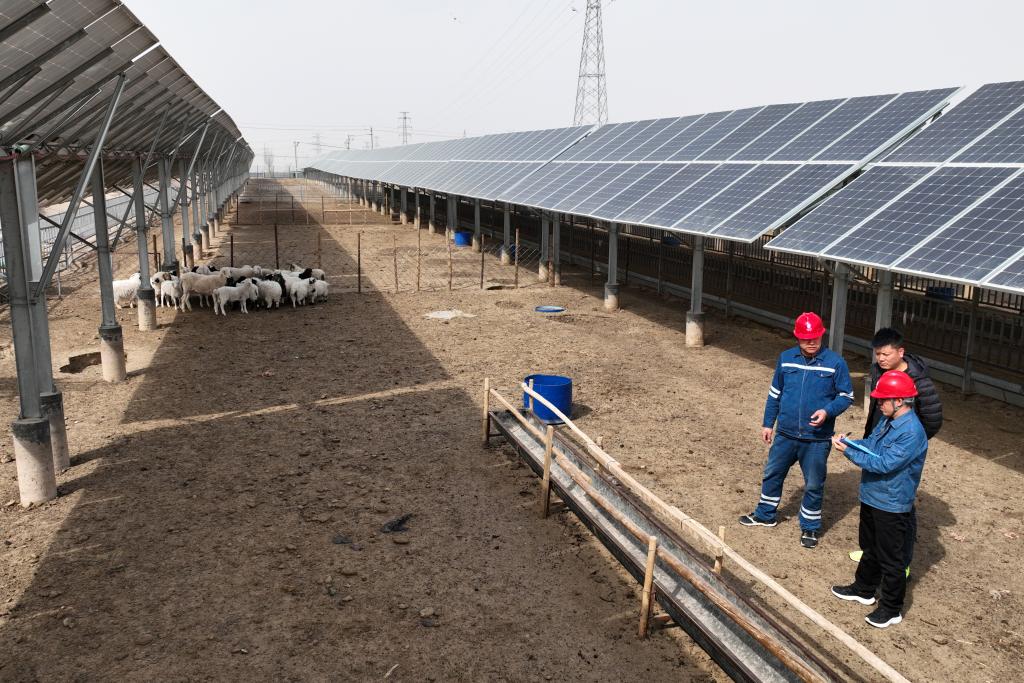 在閩寧鎮原隆村光伏養殖園區,三五成群的羊在光伏板下悠閒覓食。近年來,原隆村採用“支部+合作社+農戶”管理模式,大力發展板上發電、板下養殖的“光伏+養殖”項目,不僅帶領村民增收致富,也走上了綠色發展之路。原隆村還依託1635戶移民的屋頂建設了5兆瓦屋頂光伏電站,年均為村集體增加收益超500萬元。