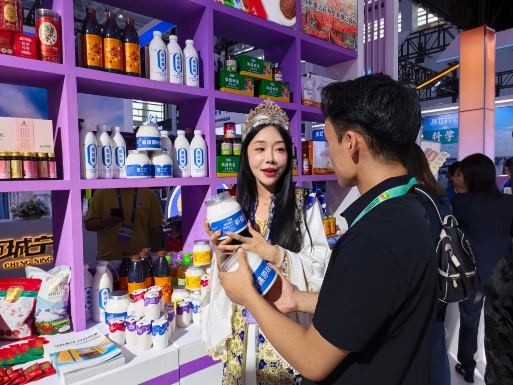 “新疆優駝乳業有限責任公司是集種植養殖、生物研發、生産加工為一體的綜合型健康食品公司,主要做駝乳粉。”新疆優駝乳業有限責任公司工作人員夏歡説,“公司的産品已經出口新加坡。我們想以本屆中阿博覽會為契機,借新疆展館這一平台,尋覓産品出口阿拉伯國家的機遇。”