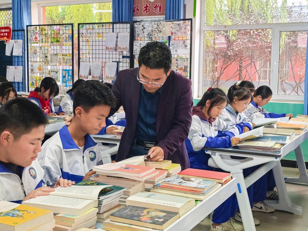在靈武市狼皮子梁學校,一群中學生正在教室裏認真閱讀。“我們形成了‘整校推進、打卡驅動、品牌引領’的閱讀育人模式,通過幫助孩子們養成良好閱讀習慣,提升閱讀能力,讓優秀、有益的文化進入孩子們的心靈,引導孩子們自覺抵制不良文化、非法出版物。”狼皮子梁學校副校長查自祥説。