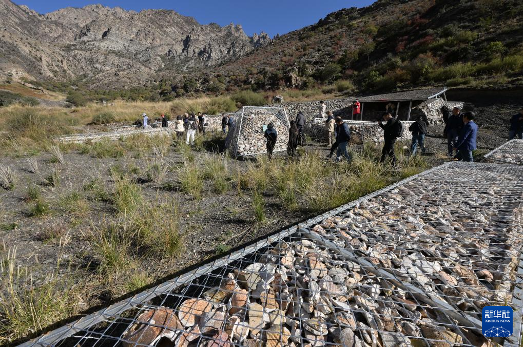 為更好保護和展示蘇峪口瓷窯遺址,考古隊工作人員使用牛毛氈和發掘出土的匣缽殘片以及鐵絲網將2021-2023年度發掘區遺跡進行了回填保護並原址展示(10月13日攝)。