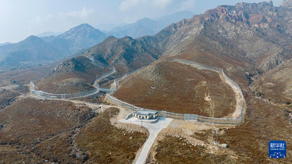 這是10月24日拍攝的位於寧夏賀蘭山國家級自然保護區內的寧夏賀蘭山雪豹保護研究基地,有2隻雪豹在這裡進行適應性訓練(無人機照片)。