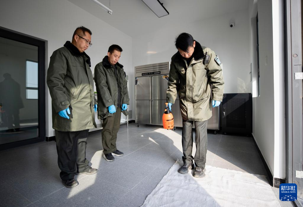 10月24日,在位於寧夏賀蘭山國家級自然保護區內的寧夏賀蘭山雪豹保護研究基地,工作人員在進行消毒作業。