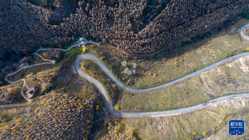10月26日在位於寧夏固原市隆德縣的寧夏六盤山紅軍長征景區拍攝的秋景(無人機照片)。