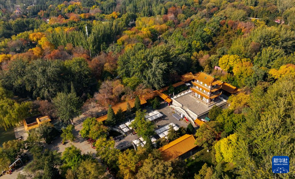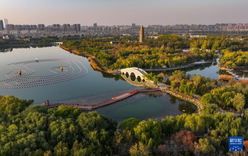 這是10月28日在銀川市鳳凰公園拍攝的秋景(無人機照片)。