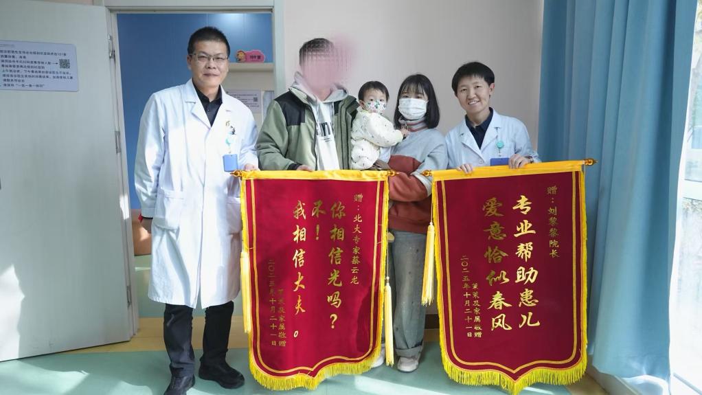 小茉莉一家人也特意製作了錦旗,專程來感謝北京大學第一醫院和北京大學第一醫院寧夏婦女兒童醫院的各位醫護人員。“專家的精湛醫術和醫院貼心的服務讓我們感到特別溫暖,沒有想到北京的專家這麼快就能來到寧夏給小茉莉手術,看到小茉莉現在健康快樂成長,我們感到很幸福。”小茉莉媽媽説。