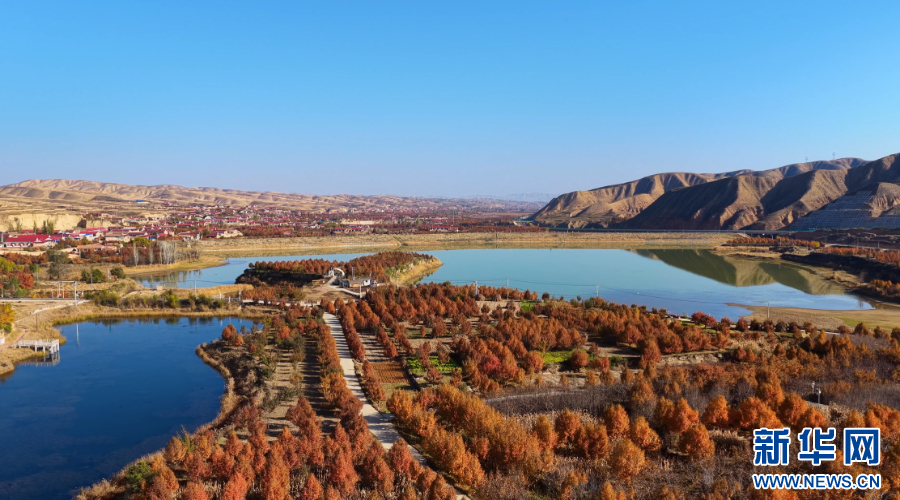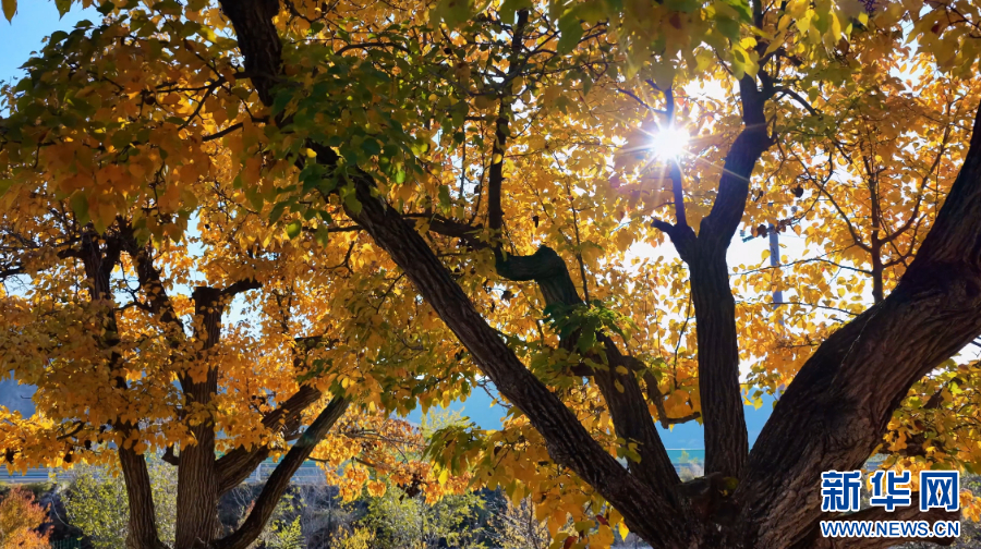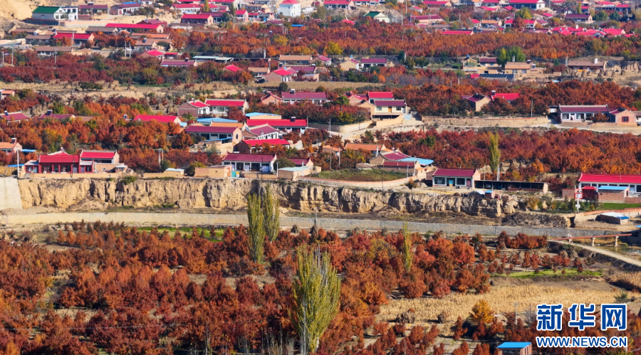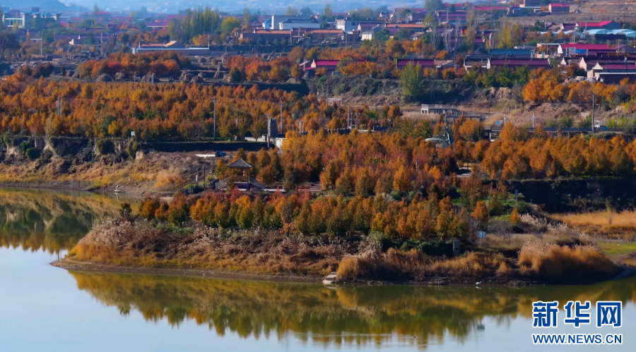 深秋時節,寧夏海原縣關橋鄉的百年梨園被秋意浸染,岸邊的林木裹着焦糖色的暖意,錯落的屋舍嵌在紅黃相間的林子裏,這方西北鄉野的秋,如詩如畫。新華網發 田虎攝