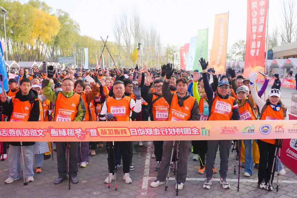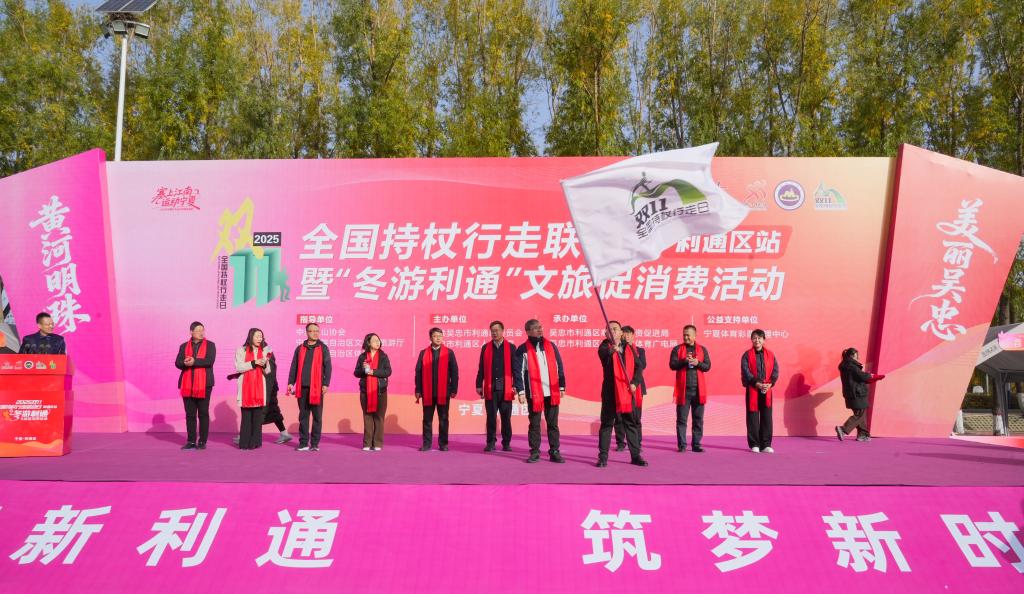 新華網銀川11月8日電(記者王鵬)當日,2025年“雙11”全國持杖行走聯動日(利通區站)暨“冬游利通”文旅促消費活動在寧夏吳忠市利通區牛家坊民俗文化旅游區開幕。本次活動以“全民健身賦能健康中國,文旅融合激活冬季消費”為主題,吸引了1500余名徒步愛好者參與。