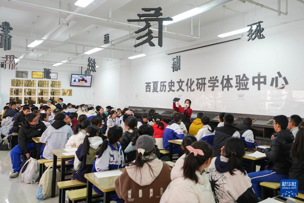 11月14日,寧夏銀川市第二十四中學組織開展一堂別開生面的思政課。400余名學生來到位於寧夏銀川市的西夏陵國家考古遺址公園,通過參觀和沉浸式體驗等方式,使學生在了解西夏相關歷史文化,增強他們對文化遺産的保護意識。新華社記者 楊植森 攝