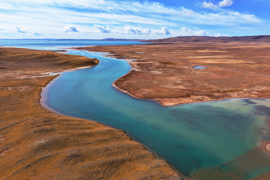 但見碑基正面,“黃河源頭”四個大字熠熠生輝,矗立碑頂的青銅牛頭雕塑,角指天穹。舉目遠眺,皚皚雪山起伏,青碧長空如洗,成群結隊的藏野驢、藏青羊等野生動物,在金色草甸上悠閒覓食休憩;黃河源頭“姊妹湖”——扎陵湖、鄂陵湖宛若兩顆藍寶石,清冽湖水蜿蜒向東奔流而去……