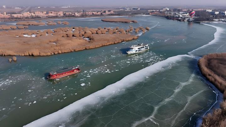 寧夏沙湖景區冬季“破冰之旅”。新華社記者 王鵬 攝