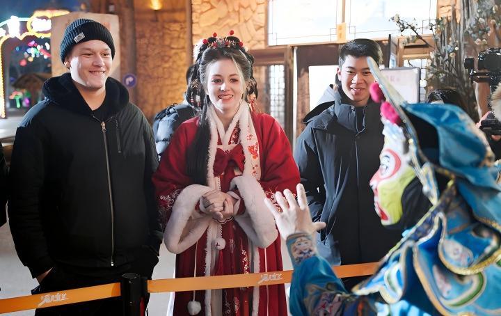 外國友人在寧夏漫葡小鎮觀看川劇變臉。新華社記者 王鵬 攝