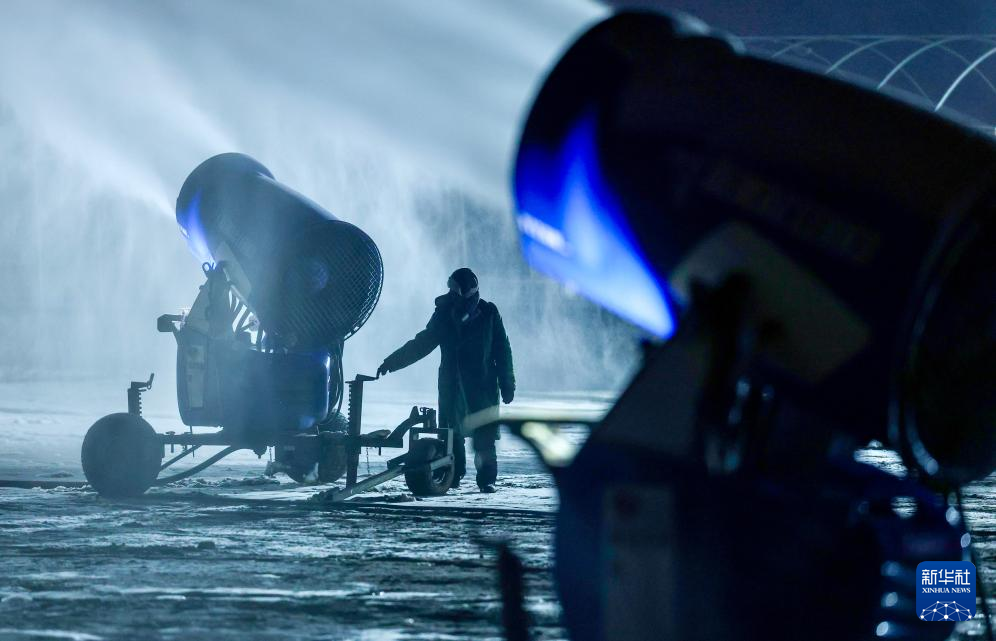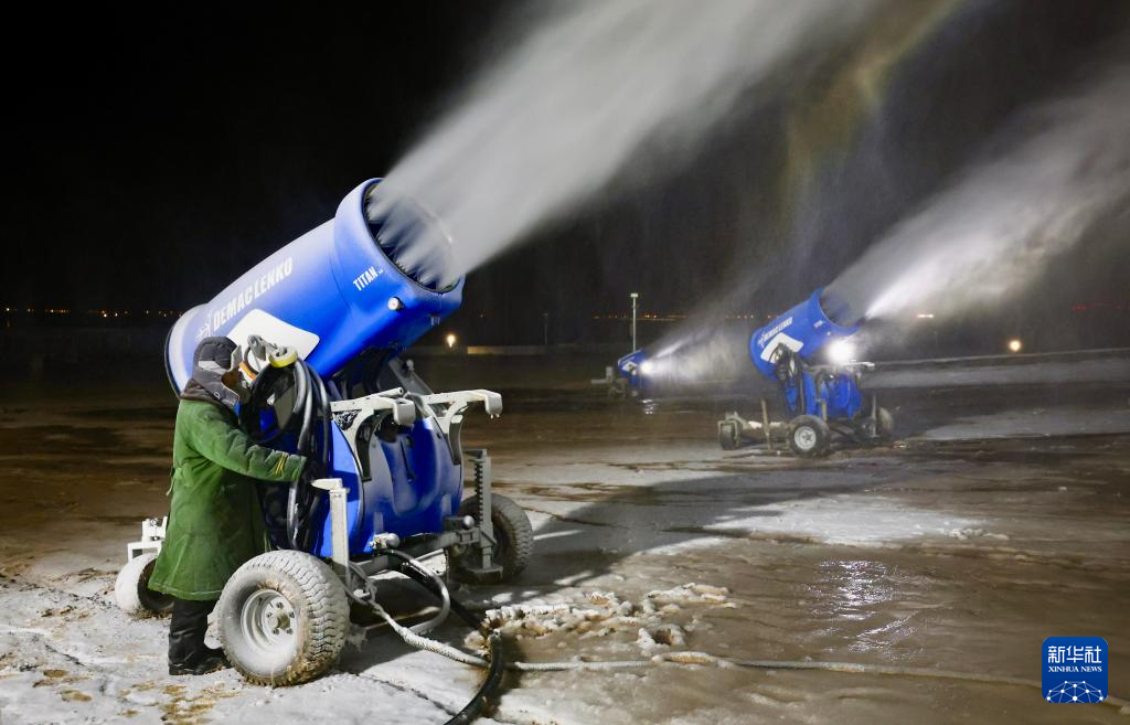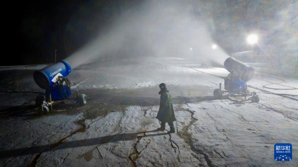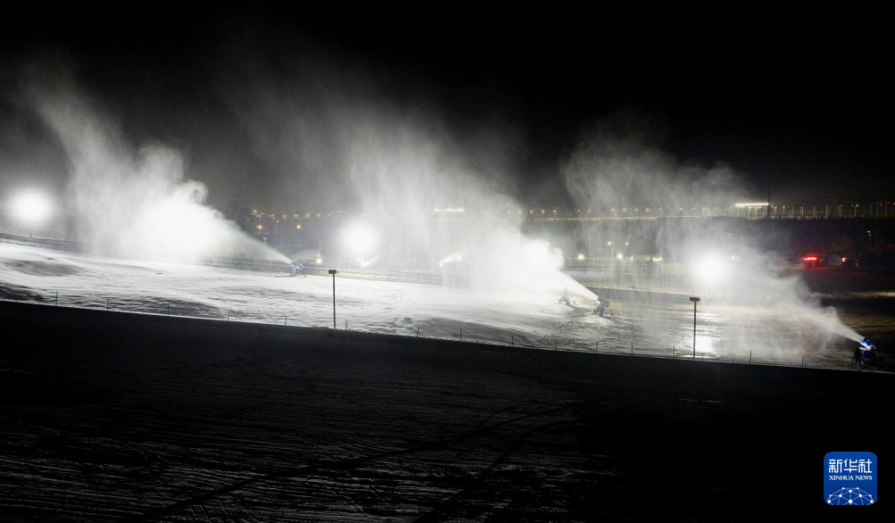 近日,寧夏銀川市夜間氣溫持續走低,銀川市各滑雪場工作人員搶抓最佳作業窗口期,推進雪道塑形、設備調試及造雪等工作,迎接即將到來的冰雪旅游季。據了解,銀川市今年將推出多項冰雪主題活動,通過豐富冬季旅游産品供給,全面激活冬季文旅消費市場。新華社記者 楊植森 攝